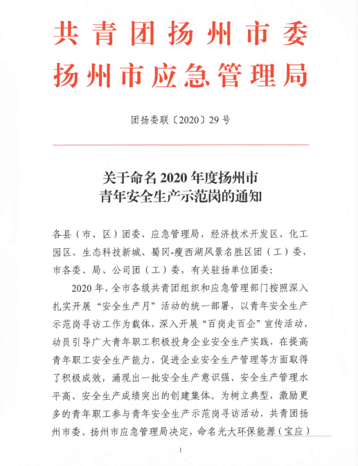 2020年,揚汽集團(tuán)修理廠維護(hù)班切實落實“安全第一、服務(wù)第一、質(zhì)量第一”總目標(biāo),以突出的成績,被共青團(tuán)揚州市委與揚州市應(yīng)急管理局授予“揚州市青年安全生產(chǎn)示范崗”稱號。