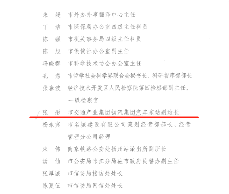 近日,揚州市信訪工作聯(lián)席會議印發(fā)《關(guān)于表彰2020年度全市信訪工作先進縣(市、區(qū))先進單位和先進個人的決定》,揚汽集團汽車東站黨支部書記、副站長張彤獲信訪工作先進個人。