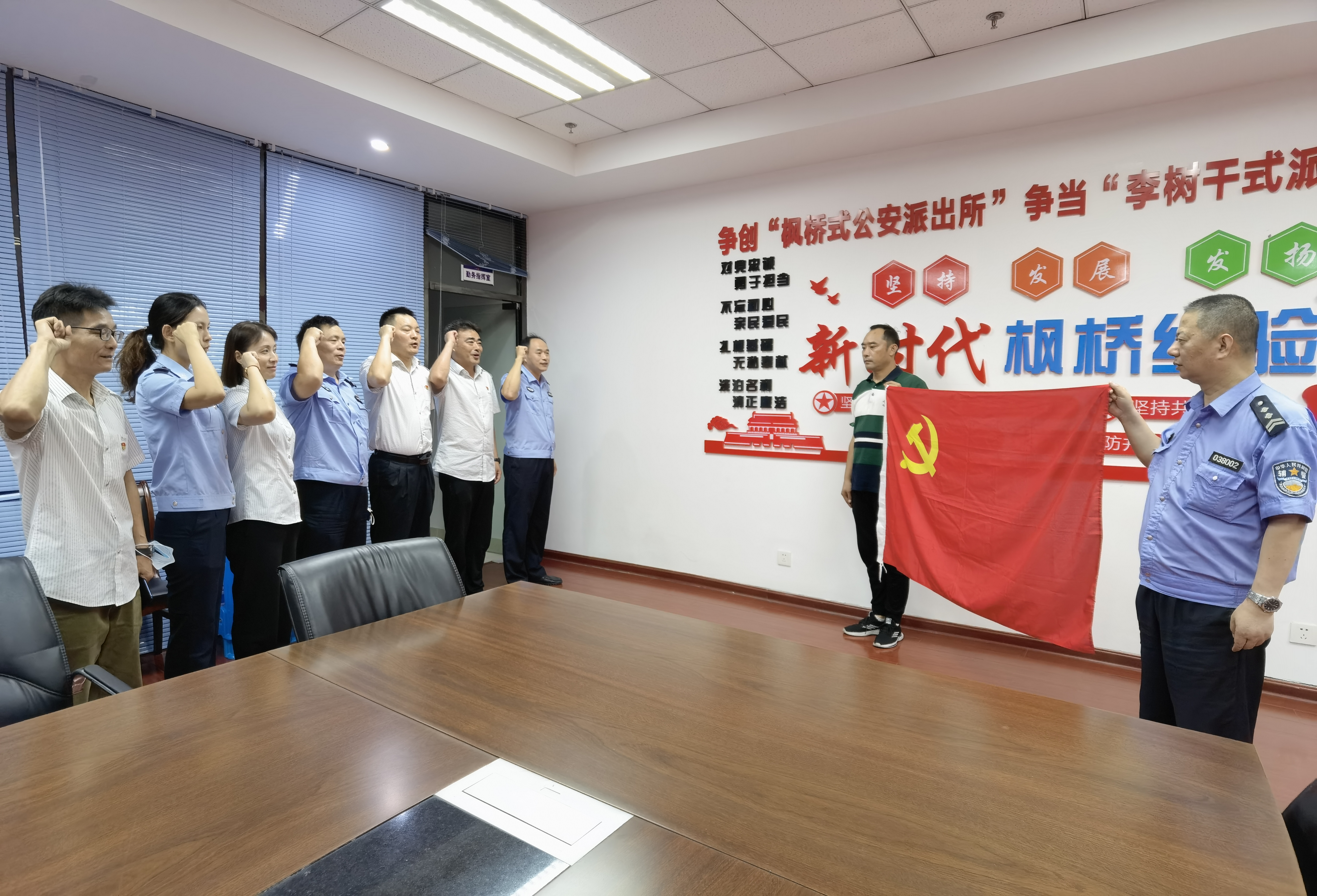 雙方支部圍繞如何利用黨建聯(lián)建加固戰(zhàn)斗堡壘、開展互幫互學(xué)、探索黨建工作新路徑、提升黨建質(zhì)量等方面進(jìn)行了座談交流,并達(dá)成了共識,加強(qiáng)警企溝通,有效地提高工作效率、提升工作效能,雙方黨員還一起重溫了入黨誓詞。